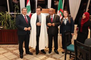 وشارك في العشاء معالي وزير الاتصال البروفسور زهير بوعمامة، ووزير الثقافة والاتصال الأسبق الدكتور محيي الدين عميمور، ومستشار رئيس الجمهورية ومنسق اللجنة الوطنية للتاريخ والذاكرة الدكتور محمد لحسن زغيدي، وعضو المحكمة الدستورية الدكتور مصباح مناس، إلى جانب عدد من المسؤولين الجزائريين وأفراد من الجالية اللبنانية المقيمة في الجزائر.