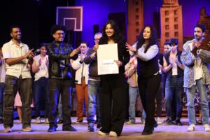 وبعد العرض قام الدكتورة انجي البستاوي والدكتور حاتم حافظ بتكريم مجموعة من نجوم المعهد في رمضان وهم: وفاء شوقي، نادر الجوهري، علاء هلال، رضوى جودة، ووالدة الفنان محمود حجاج شيكا نيابة عنه.
