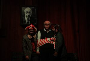 العرض بطولة: احمد مخيمر، احمد عباس، ميرنا الجوهري، إبراهيم الالفي، جاسمين خالد، سعيد سلمان، الطفلة كيان احمد كشك، إضاءة احمد طارق، أزياء ميار ممدوح، مكياج مارينا برزي، ديكور: عشوائي، اكسسوار محمد مهدي، موسيقى احمد حسن، بوستر احمد الجوهري، مخرجان منفذان: أحمد عزت وأحمد شعيب، والمسرحية هي توليفة من نصوص المؤلف الروماني الفرنسي يوجين يونسكو، ومن إخراج محمد عادل يوسف.